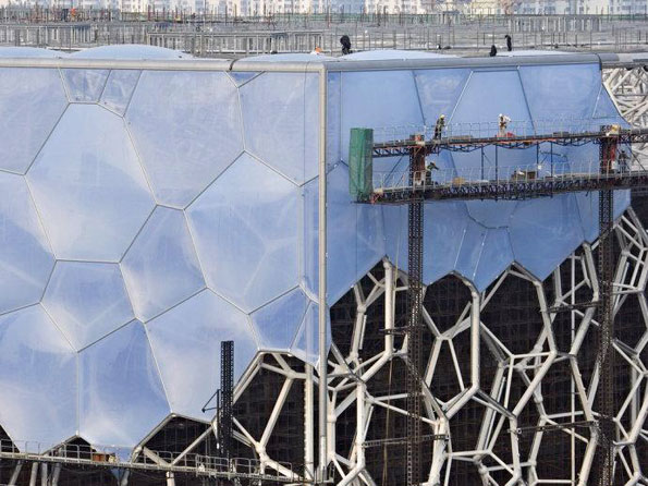 国家游泳中心-2-通过表面覆盖的ETFE透明膜,赋予了建筑冰晶状的外貌