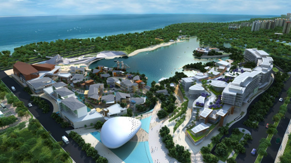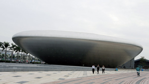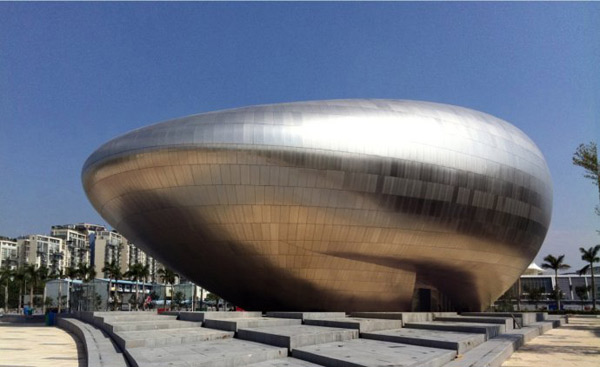 深圳欢乐海岸OCT设计博物馆设计的目的是创造一个超现实主题的空间并且带给人和周围环境超然的体验。室内设计依附于一个连续的,没有投影,没有厚度的白色曲面。从而形成了一个超现实的无边界空间,似乎要走向永恒,让人联想到詹姆斯•特瑞尔的装置艺术。由此产生的效果好似云中雾里。建筑变成了一个极简纯净的背景,仅仅有一些随机散落的三角形小窗户跳跃在其上,好似展翅飞翔的鸟儿。