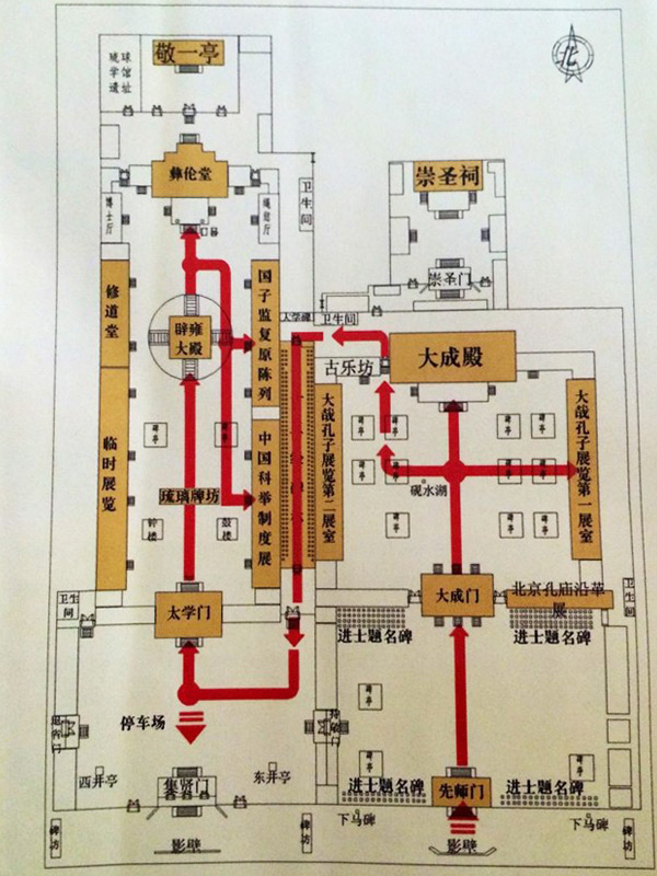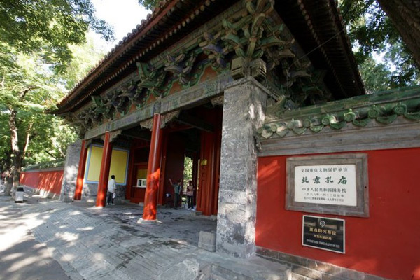 北京孔庙和国子监博物馆始建于元代,合于“左庙右学”的古制,分别作为皇帝祭祀孔子的场所和中央最高学府。两组建筑群都采取沿中轴线而建、左右对称的中国传统建筑方式,组成了一套完整、宏伟、壮丽的古代建筑群。
