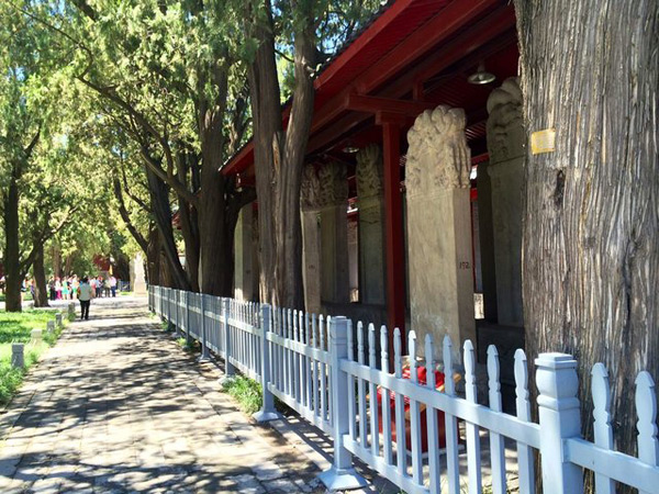 北京孔庙与其他地方的不同,因为它有碑林,其实就是一部石刻的功名簿。元、明、清三代的读书人,凡中了举人的就在此立一块石碑,“一举成名天下闻”。