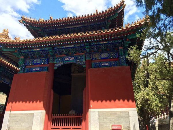 走过太学门,就是国子监二门内大型琉璃坊牌坊,它是北京唯一一座专门为教育而设立的牌坊。正反两面横额均为皇帝御题,是中国古代崇文重教的象征。位于集贤门内,是三间四柱七楼庑殿顶式琉璃牌坊,乾隆四十八年(1783年)。