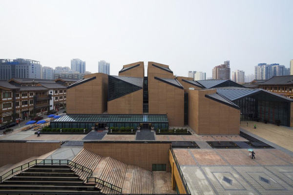 建筑设计在切实保护隋唐西市道路、石桥、沟渠和建筑等遗址的基础上,通过合理布局,创造性地保护和展示了隋唐西市十字街遗址以及十字街原有道路 格局、尺度、规模及氛围。运用新的地域建筑语言解读大唐西市的历史,衬托和展示文物与遗址环境,为人们认识和了解文物提供多种视角;表现商业博物馆的独特 性,表现西市以及私人收藏文物的独特性;结合国内外博物馆发展的趋势,赋予遗址和文物以新的生命力,寓教于乐,结合城市客厅功能和丝绸之路起点标志,文化 活动与休闲博览,促进博物馆可持续发展。