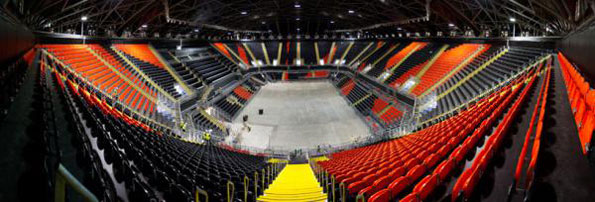 在2012年伦敦奥运会篮球馆的设计中,SKM/wilkinson eyre/KSS设计团队面临了一个挑战,他们需要创造一个兼具简洁性和可持续性的临时建筑,并且要考虑到奥运会结束后的问题。由于这座场馆使用时间非常短,所以在奥运会结束后,有三分之二的材料和构建将被回收再利用。这里将举行篮球,手球决赛,轮椅篮球和轮椅橄榄球比赛。同时,它还作为奥运会开/闭幕式期间的运动员等候区。