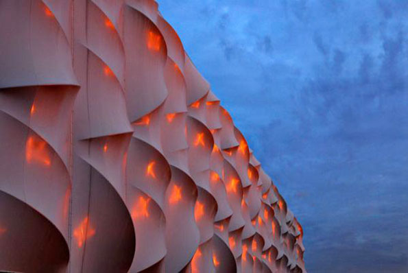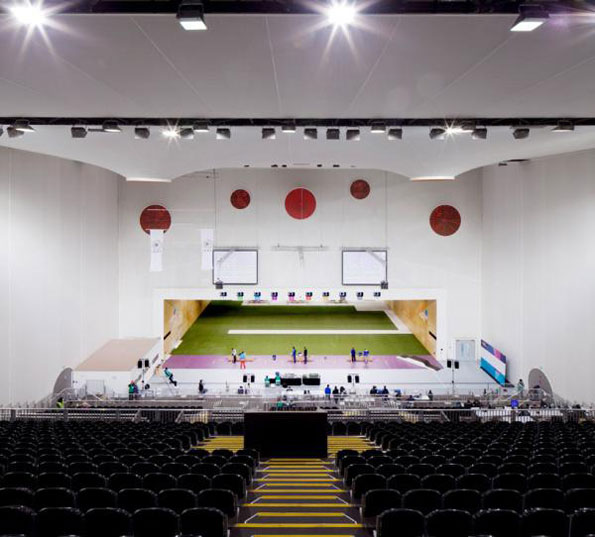 德国建筑事务所magma architecture设计了2012年伦敦“奥运会射击赛场”,这里将举行10米,25米和50米射击比赛。18,000 m2的空间被双层PVC薄膜包围,内部由模数化的钢桁架支撑。