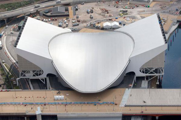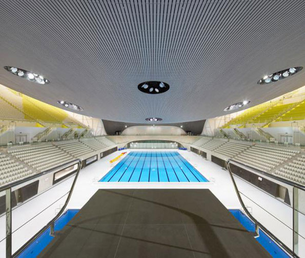 由世界知名的zaha hadid architects设计的奥运“水上中心”能够在任何时间容纳17,500名观众。这座场馆将举行游泳,跳水,花样游泳和水球比赛。建筑师设计了一个铝板钢构架屋顶,长160米宽90米。双曲率剖物线结构在视觉上让人联想到起伏的波浪,反映了各项水上运动赛事的特点。