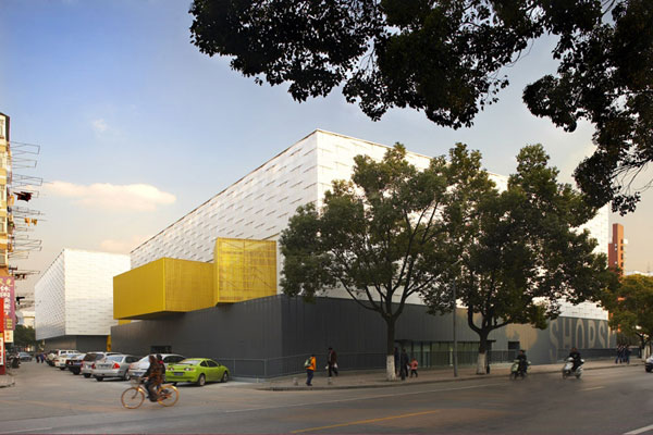 原建筑在体型、功能、基础、技术资料等方面都存在一些问题,于是我们的改造策略是在原建筑外侧加一个装饰层,以便修补原体型的不足和尽量减少对原始建筑结构的扰动,在选取外装饰层材料时,考虑到建筑内部的采光,材料重量及建筑的整体设想等诸多因素,最终选择了实心聚碳酸脂板,达到了良好的效果。