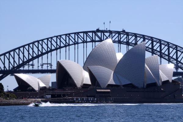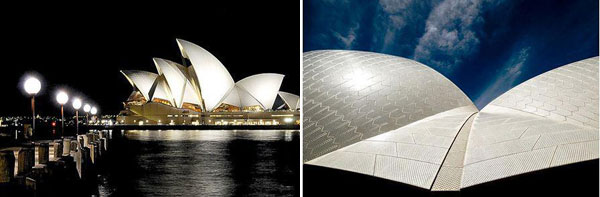 悉尼歌剧院的外型犹如即将乘风出海的白色风帆,与周围景色相映成趣。悉尼歌剧院是从20世纪50年代开始构思兴建,1955年起公开徵求世界各地的设计作品,至1956年共有32个国家233个作品参选,後来丹麦建筑师约恩·伍重的设计屏雀中选,共耗时16年、斥资1200万澳大利亚元完成建造,为了筹措经费,除了募集基金外,澳大利亚政府还曾於1959年发行悉尼歌剧院彩券。