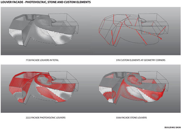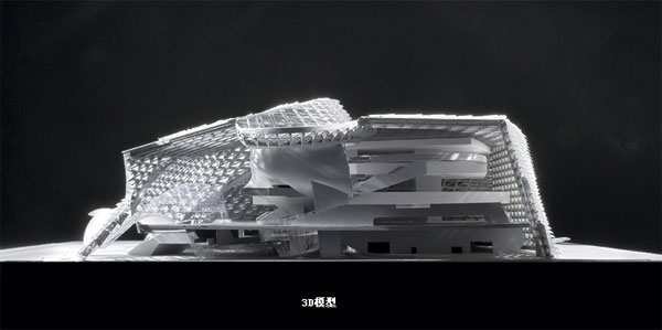 扭曲的立面吸引游客通过楼梯或者自动扶梯进入建筑的公共广场,这也是博物馆游览路线的起始点以及整个建筑的主要朝向面。这里有通向博物馆各个垂直空间的竖 向交通,包括电梯、自动扶梯、楼梯,还有从公共广场过渡到博物馆空间(或者说是从博物馆空间过渡到公共广场)的坡道,这些不同的垂直交通可以让游客从不同 的角度观赏这个建筑体。公共大厅空间包含了公共广场,其包裹了两个展馆间的区域,其距地面10m高,并竖向往上延展至距地面40m高的建筑表皮处。