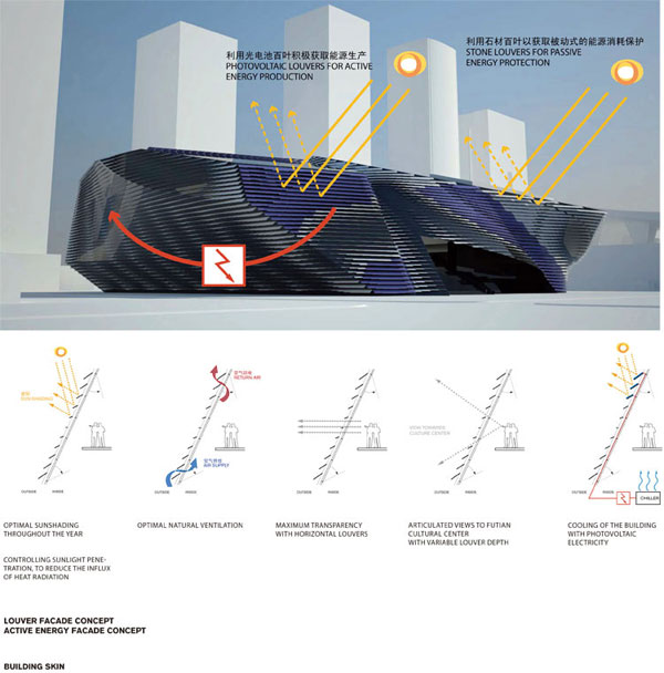 “花”,也就是位于规划展览馆以及现代艺术馆之间的垂直交通空间,不仅联系了两个展馆,而且还布置了茶室、艺术沙龙等休闲设施。