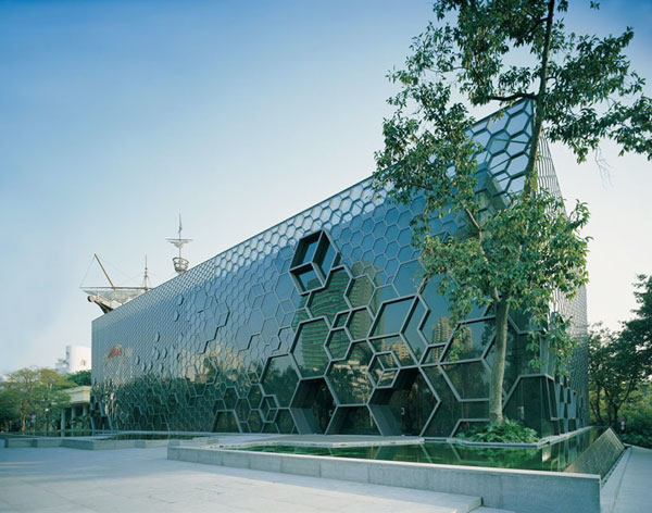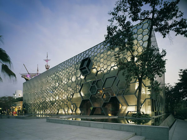 “华”美术馆的前身是建于1980年代早期的深圳湾大酒店的洗衣房。这是一座存在于华侨城西班牙风情主题酒店和典雅的何香 凝美术馆夹缝中的旧厂房,其改造设计既要突显个性,与两边建筑风格形成差异性对比,同时也要体现与两端建筑的关系及整体性。改造策略完整地保留了原建筑立 面的窗墙体系,加建的立面通过包裹的手法,将单一的原始六边形通过复杂有机的组合形成由实至虚,由小到大,多层次渐变的三维视觉效果。