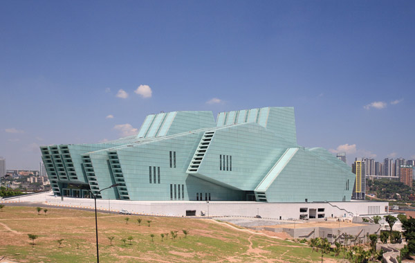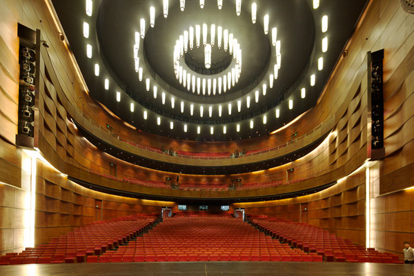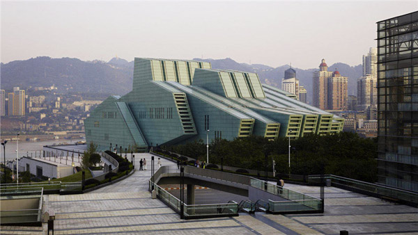 观看艺术演出的观众由道路层面进入入口大厅,那里设有衣帽间、卫生间、问讯处、售票处、宣传工作办公间等设施。检票后,观众踏上庄严宽阔的楼梯 进入剧场大厅层面的前厅。观众在前厅中可以观赏位于长江和嘉陵江对岸的重庆城区天际轮廓,以及科学中心和穿越江北城新区的美丽的林荫大道。拥有两个楼座的 剧场几何形体为传统的马蹄形。在声学和视角方面,剧场的布局适于各种音乐和非音乐演出,包括歌舞演出、话剧、交响乐、室内乐和大型歌剧演出。