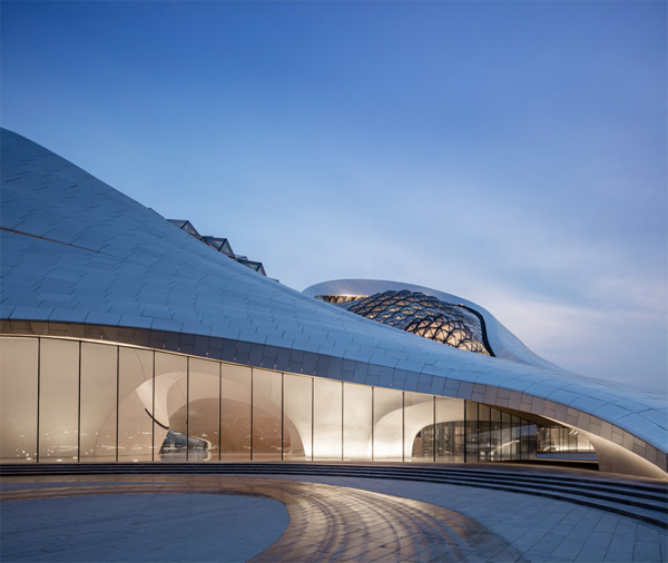 主厅大剧院的内部采用了水曲柳木,模仿出被慢慢侵蚀的木质体块效果。木制墙壁延伸到主舞台并将其环绕。观众厅顶部天窗的自然采光设计,在白天可以完全满足室 内照明,既节能又可以营造出特殊的光影氛围。精心的细部、对地方特质的敏感以及哈尔滨的艺术和文化造就了大剧院的有机和雕塑外形,这将满足游客享受一场建 筑和戏剧之旅。