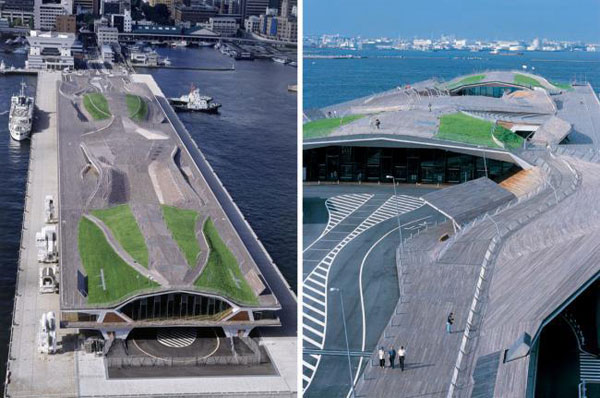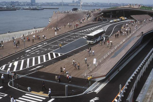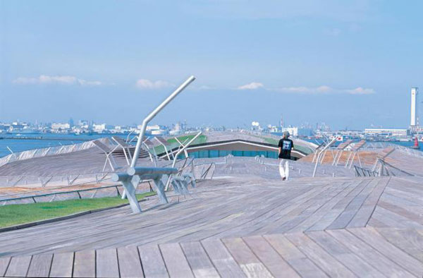 本项目最伟大的概念或许就要数它与城市滨水区之间的密切联系了。瞭望甲板作为完全开放的公共广场,其面积倍增。客运中心于邻近的Yamashita 和 Akaranega公园无缝融合,使其成为一个完全不被打扰并可任意进入的城市公园景观。其高度经过精确计算,以使其能成为海岸的延伸,并且确保内陆部分对于滨海景观的视线不受影响。