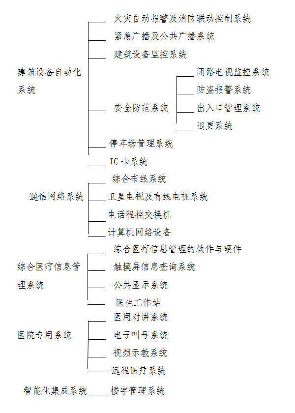 9.1.1 医院智能化系统应根据医院的使用特点和需求,采用智能建筑的概念进行设计。