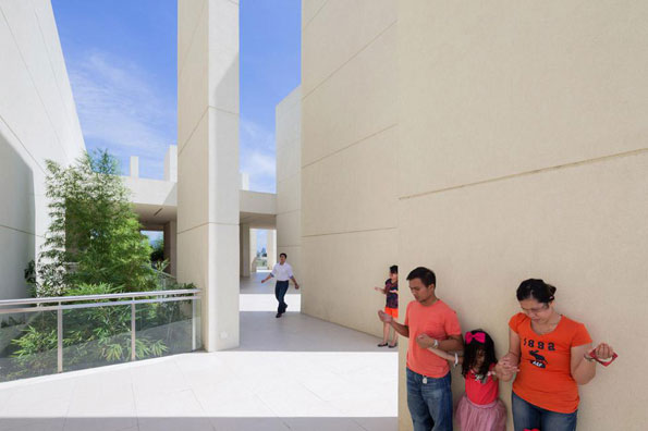人们穿行林立排列的墙体之间,探索,祈祷,游走。石墙,光,下沉花园,空隙,天空,共奏神圣之曲。