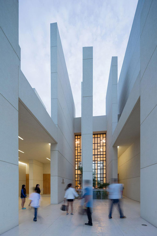 所有的墙面都沿一个方向排布,这样建筑就拥有一个完全不透明的石墙立面和另外一个完全通透的立面