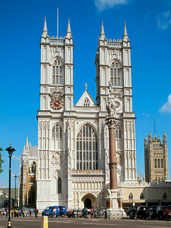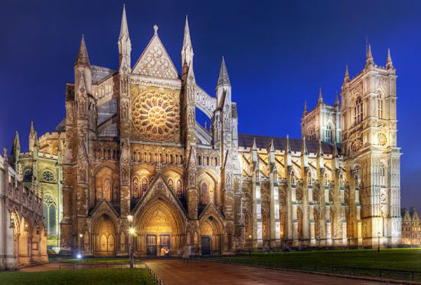威斯敏斯特大教堂坐落在伦敦泰晤士河北岸,原是一座天主教本笃会隐修院,始建于公元960 年,1045年进行了扩建,1065年建成,1220年至1517年进行了重建。宏伟壮观的威斯敏斯特教堂是英国的圣地,在英国众多的教堂中地位显赫,可以 说是英国地位最高的教堂。除了王室成员,英国许多领域的伟大人物也埋葬在此。英国人因此把威斯敏斯特教堂称为“荣誉的宝塔尖”,认为死后能在这里占据一席之地,是至高无上的光荣。