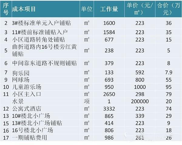 9.室外零星设施占比2.28%。控制方向:此部分为小区必要设施。垃圾桶没单元入口设置一个,延两条主轴各设置3个,中心景观区和活动区个设置一个共需要约50个,每个按1000元计算。坐凳按每栋楼设置2个计算,约需35个,每个按2000元预估。其它景观小品按每栋楼5个计算,其它区域按需要布置10-15个,公约100个,每个按5000元预估。