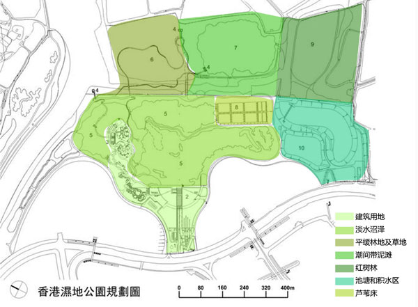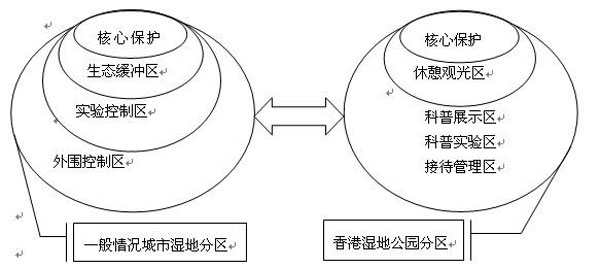 图3:城市湿地公园规划分区与香港湿地公园规划分区