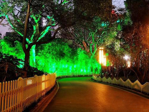园内道路的照明方法:路是园林的脉络,从入口将游人引向各个景点。路径走向蜿蜒曲折,给人创造一种步移景异,曲径通幽的效果。照明方法应紧扣这一特点进行。