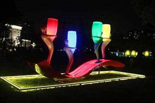 园林中的雕塑小品、标志,一类是观赏性的;另一类是纪念性的。照明应从雕塑的特征,特别对关键的部位如:头部、神态、用料、色彩及周围环境出发,采用侧面自上而下投光,不宜从正面均匀照射,这样才能造成神态真实、光彩适宜、立体感强的照明效果。应选择窄光束灯具配以适当的光源,要避开游人视线的方向,防止眩光干扰。