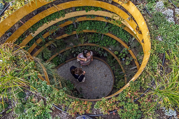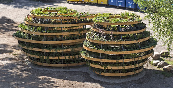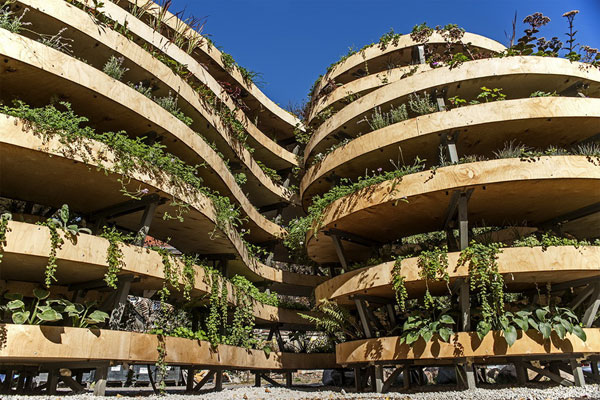 该装置主要由胶合板和钢铁制造,总共设有7层,形成了110平方米的种植区域,种植了有100多个品种、3000多株植物。