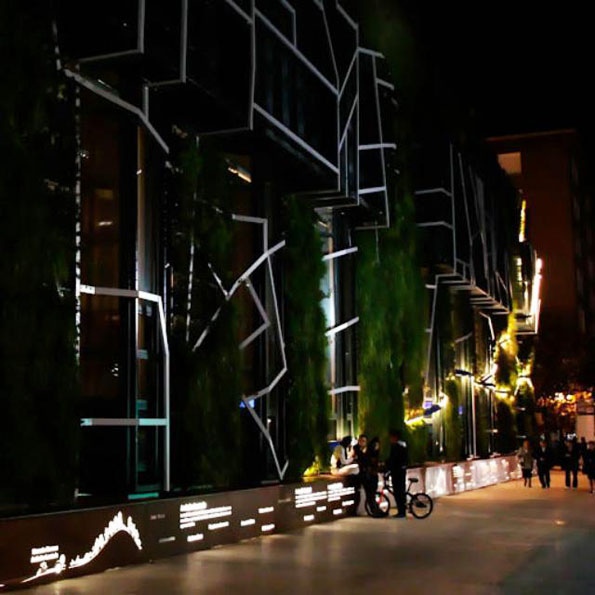 垂直花园在晚上会利用节能的LED灯进行照明。这在维多利亚的中心——Gasteiz创造了一个氛围独特的散步区域。该项目不仅可以提供学习各种植物信息的环境,同时也可以为市民提供一个放松的对话空间。