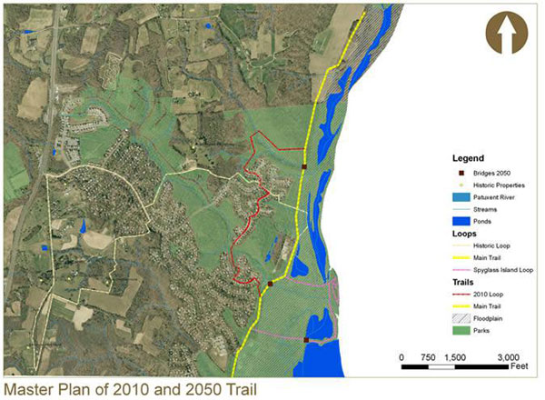图06:典型的总平面图标明了拟建的2010年步道列阵和拟建的2050年步道系统和休闲娱乐设施,包括区域内的焦点区。Photo Credit: Lauren Kovach