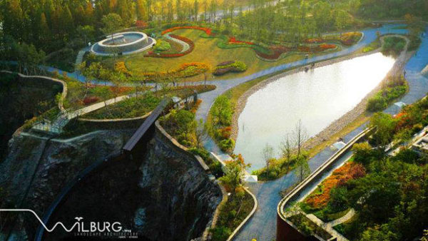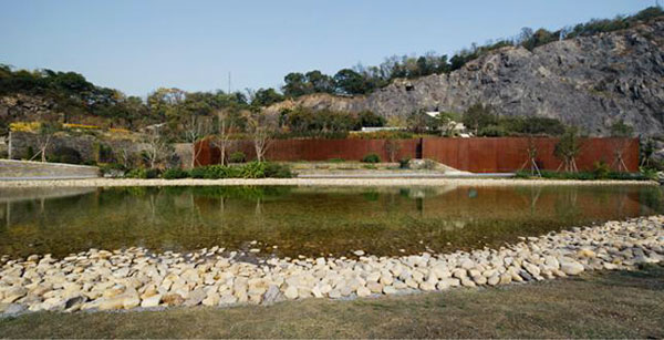 矿坑独特的空间形态为设计师营造一处不同寻常的景观提供了可能,但景观设计师同时也面临着诸多挑战。如,严重退化的生态环境和荒废的景观重建问题。最后,团队以“最小干预”、“应对采石矿坑的生态修复”及“体现东方山水意韵”为设计理念。