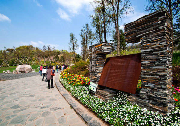 平湖区位于花园的西区,是游客从主入口进入花园后首先映入眼帘的景色,该区域曾经是死气沉沉的岩石表面,除了在其东南边上有部分水杉林。设计师通过挖掘和土地回填重建地形,形成了新的“镜湖”和“花海”。“镜湖”结合另一个游客中心通过与深潭的平衡关系和湖面的反射作用有效减少了山体垂直面上带给人的迟钝感,而“花海”所在的南部山丘不仅隔离了外界的干扰,也为花卉种植和展示提供了理想的空间。