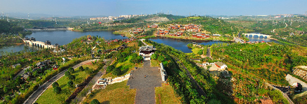 园博园位于重庆市北部新区龙景湖公园,现有面积219.6831公顷,四面临街,可远眺缙云山、鸡公山,嘉陵江温塘峡、观音峡等山景、水景、峡景和北碚城 市景观,可满足游览休息。周围交通便利,有轻轨3号线经过。耗资近20亿、占地3300亩的重庆园博园,是一个集自然景观和人文景观为一体的超大型城市生 态公园。