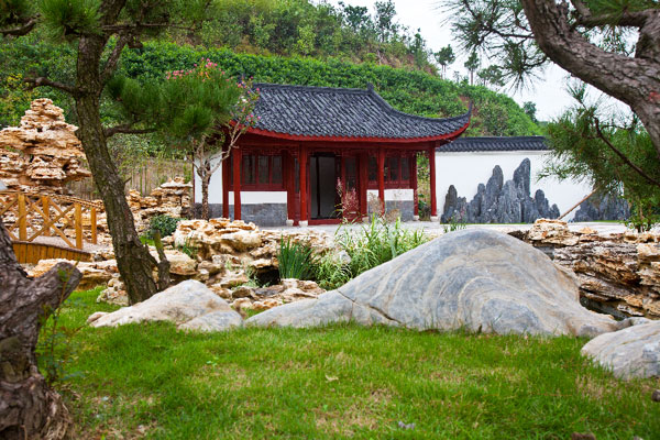 位于与东入口相邻的山谷地带,面积27400㎡,设置12个展园。采用江南园林理景手法,充分体现江南园林宜人的水乡氛围和淡雅柔美的景致。
