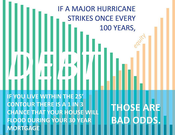 Risks within the 100 year storm surge are clear and easily measured through both historic surge depth and modeled inundation. 350,000 people live within 25' of sea level