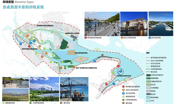 湾区城市环抱生态群岛,塑造点、轴、面多层次景观空间类型,整体形成多条由内陆向湾的生态廊道(水廊、绿廊),在湾区城市建设范围内打通生态联系廊道,形成山—水联系。同时打造多种生态类型复合格局,增加生态多样性发展,保持区域生态品质与总量,提高区域生态应激能力。重点塑造滨海多元活力岸线,形成类型丰富的岸线系统。划定生态保护区,进行分级保护,对地区范围内七个自然或人工岛的建设及利用采用生态处理手法。全面打造自然与城市共生的环境,开启厦门港南岸水生活模式。