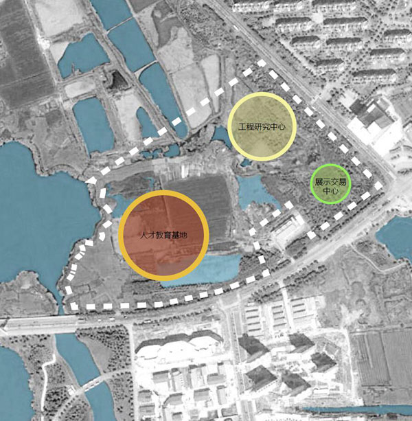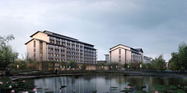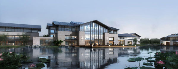 整个规划以“水”为建筑载体,将夏驾河的自然水源引入基地内部,营建中心水体景观,其支流则迂回盘区于建筑与院落之间;使水系景观聚则水面辽阔,分则潆洄环抱,形成水乡淋漫之感。
