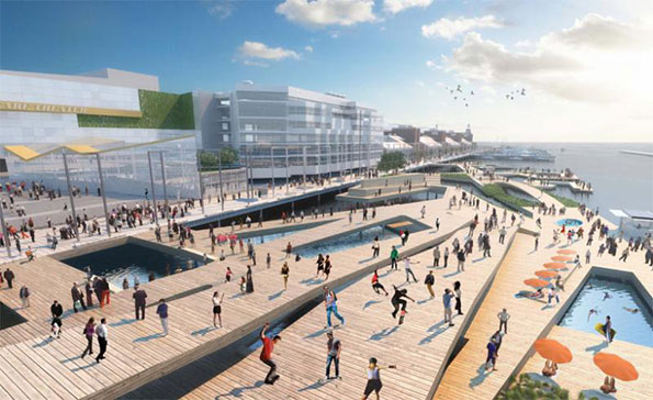 由国际知名事务所aedas建筑师davis brody bond和波士顿景观建筑事务所martha schwartz partners合作设计的“pierescape”方案,入围了芝加哥海军码头设计竞赛。这个设计为芝加哥市民引入了一个扩张的景观网络,使得城市的临湖区变得“永远开放、自由和清晰。”