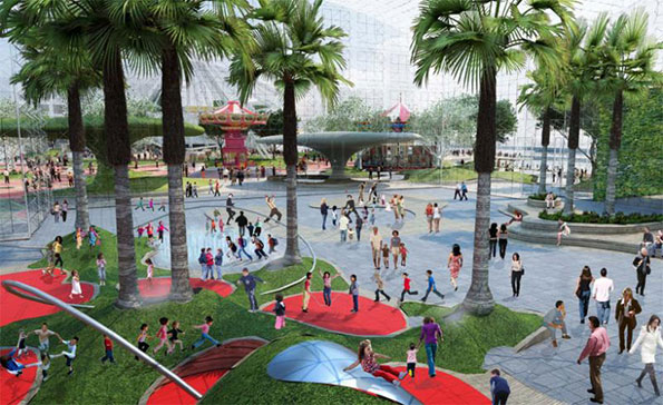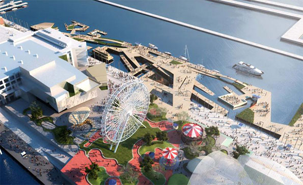 四个带售票厅的新船坞包含了娱乐和观光路线。三个漂浮公园位于折线坡道和步道上,上面将举行季节性活动,包括表演场地,游戏和休息区。曲线形的道路非常适合夏季滑板运动和冬季滑雪。