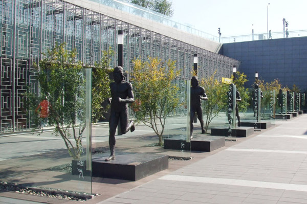 奥林匹克公园下沉花园7处独具中国特色的庭院完美演绎了“开放的紫禁城”。位于奥林匹克公园中心区地下9米的下沉花 园,其两侧是大型购物中心和地铁的出入口,长达700米的空间由7个庭院串联而成。自南向北分别御道宫门、古木花厅、礼乐重门、穿越瀛洲、合院谐趣、水印 长天。7处庭院以中国元素为亮点,充分展示出中国历史与现代的文化传承。