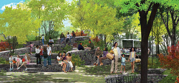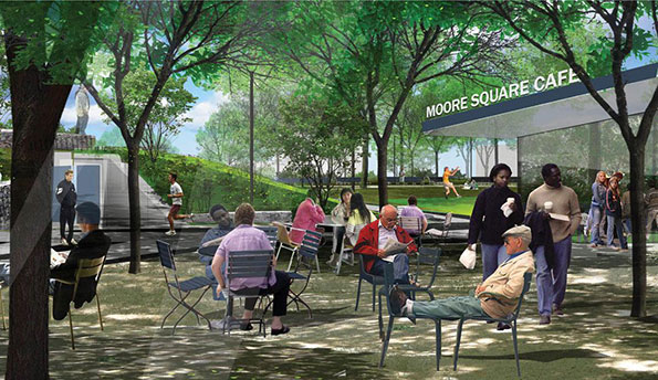 The café and public bathrooms create a destination, provide refreshments, and invite citizens to occupy the Square and enjoy the richness of urban life.