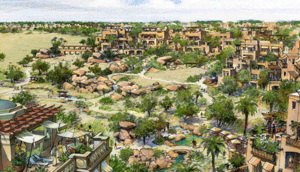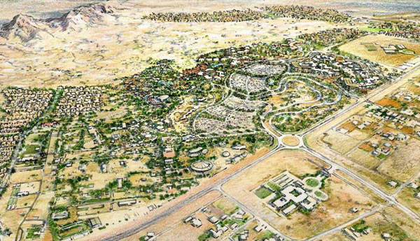EDSA以鼓励倡导对复杂的沙漠生态环境及人类,文化以及环境之间和谐共生的关系的长期尊重为目标,成功领导了一支来自多领域的顾问团队完成了设计任务。 以资源环境保护的合理管理为出发点,艾因野生动物园度假区汇集了度假,居住,商业,教育及娱乐等多种元素,这些元素和谐相容且都被艾因市优美的自然风光以及集合了阿拉伯,非洲,亚洲多地特色的人工沙漠景观所环绕。