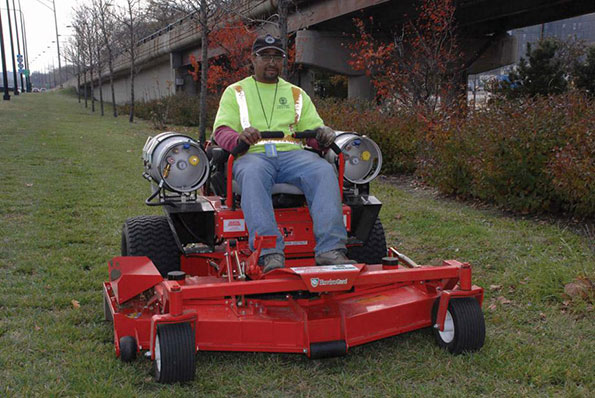 As part of the Park District’s sustainable guidelines diesel lawn mowers are being replaced with propane mowers that reduce harmful emissions from their maintenance