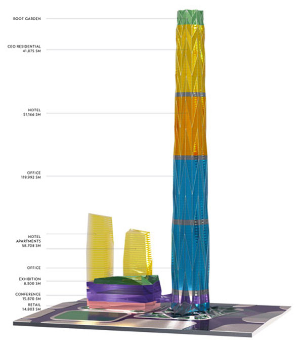 成都绿地中心,建筑高度468米,由Adrian Smith和Gordon Gill设计,建筑师曾在SOM工作,设计过哈里发塔和即将建成的王国塔。一座468米高的晶状摩天大楼即将动工,位于中国成都。成都绿地中心将会成为中国西南部最高的建筑。