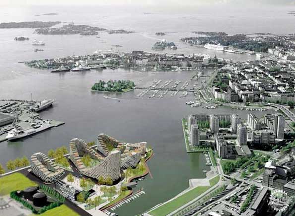 再次回到赫尔辛基,2008 年的时候一个新超级海港中心在市郊开始营业,使得市中心原本繁华的海港中心萧条起来,大片土地空置,所以赫尔辛基打算在未来15 年内在此地区重新建造约百万平方米的建筑来重新打造市区的海港中心。
