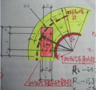 “汽车的最小转弯半径”与车道内径的关系详下图所示。