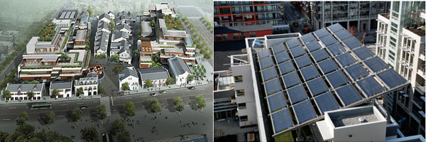 太阳能光伏系统也是目前开始应用的新技术,在西湖天地二期中就安装了大量的光伏电板作为辅助的电力供应系统。