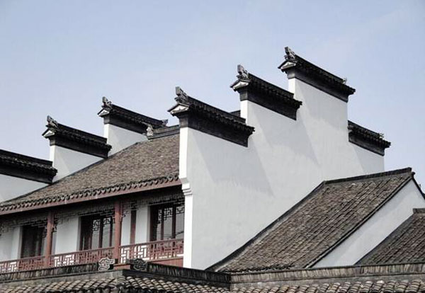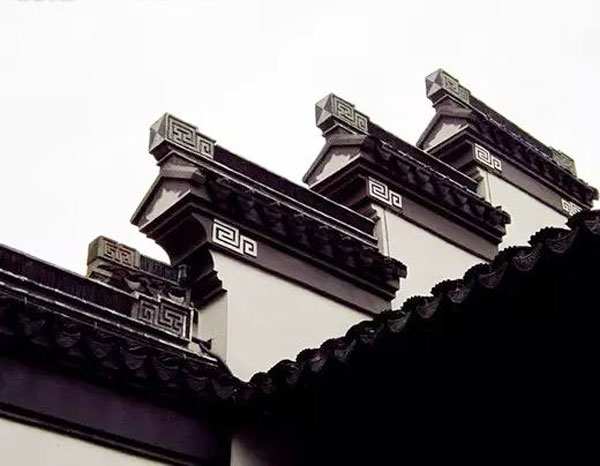 马头墙墙头都高出于屋顶,轮廓作阶梯状,脊檐长短随着房屋的进深而变化,多檐变化的马头墙在江南民居中广泛地被采用,有一阶、二阶、三阶、四阶之分,也可称为一叠式、两叠式、三叠式、四叠式,通常三阶、四阶更常见,较大的民居,因有前后厅,砖墙墙面以白灰粉刷,墙头覆以青瓦两坡墙檐,白墙青瓦,明朗而雅素。
