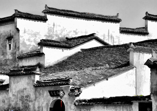 赣派建筑高大封闭的墙体,因为马头墙设计而显得错落有致,那静止、呆板的墙体,因为有了马头墙,从而显出一种动态的美感。而从高处往上看,聚族而居的村落中,高低起伏的马头墙,给人视觉产生一种万马奔腾动感,也隐喻着整个宗族生气勃勃,兴旺发达。