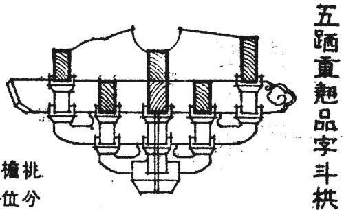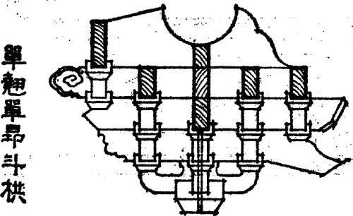 依据形式的不同可分为:一斗二升对麻叶和一斗三升等简单的,翘昂式的,品字的(每昂),还有一种溜金斗拱,是清皇宫,祭坛等重要地方才可用。