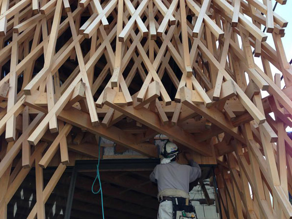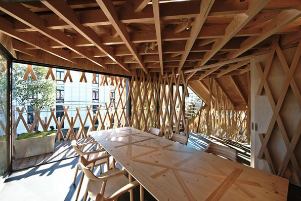 60mm x 60mm的木框像篮子一样包裹了整个建筑立面