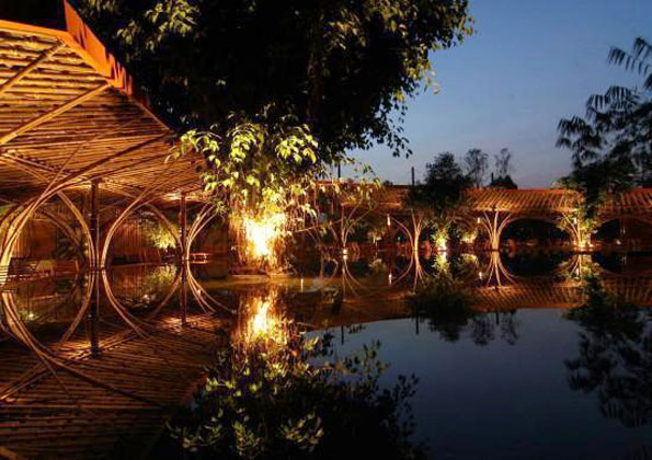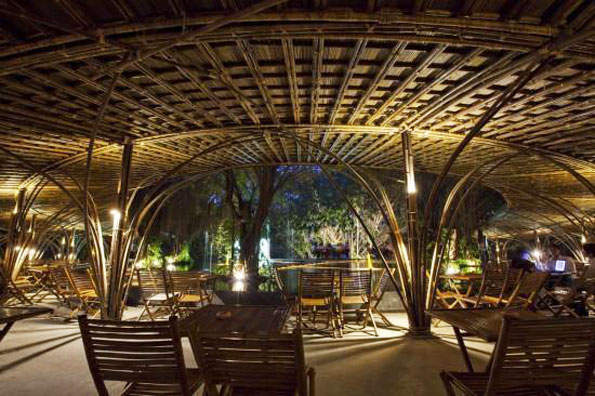众所周知,越南人对竹子是非常熟悉的。竹子被广泛应用于多个领域,例如建造、装饰材料、手工艺品、餐具等等。在wNw(风水)酒吧和咖啡屋中,建筑师再次挖掘了竹子的特质——友好但又非同寻常。